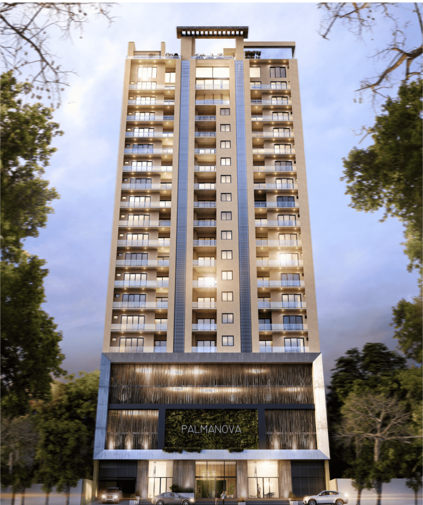 El edificio Palmanova es un espacio exclusivo de 18.205 m² con 128 departamentos de diseño moderno y cocheras para mayor comodidad. Vive el lujo y confort en cada rincón de tu nuevo hogar.